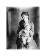 Silveria Fañanás con uno de sus hijos sentados en su regazo |